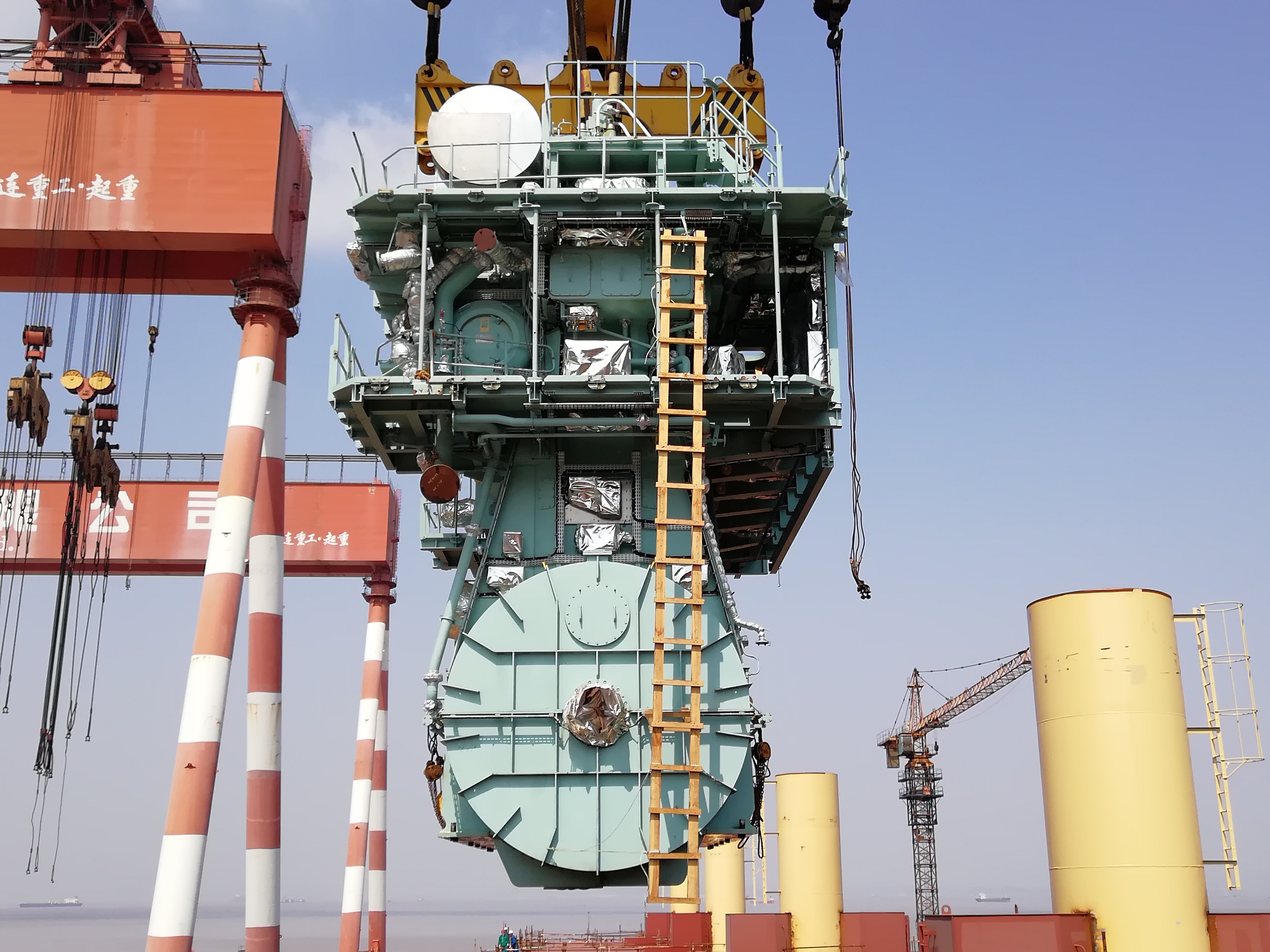 上午11點30分左右,整個吊裝過程安全高效地完成了。生產管理處處長助理葉海倫在現場說,此次吊裝比較順利,前期準備充分,機艙內的搭設也拆除得比較完整。主機服務商在吊裝完成后高興地說,很順利很成功,采取的割除方案也是最簡便合理的。
