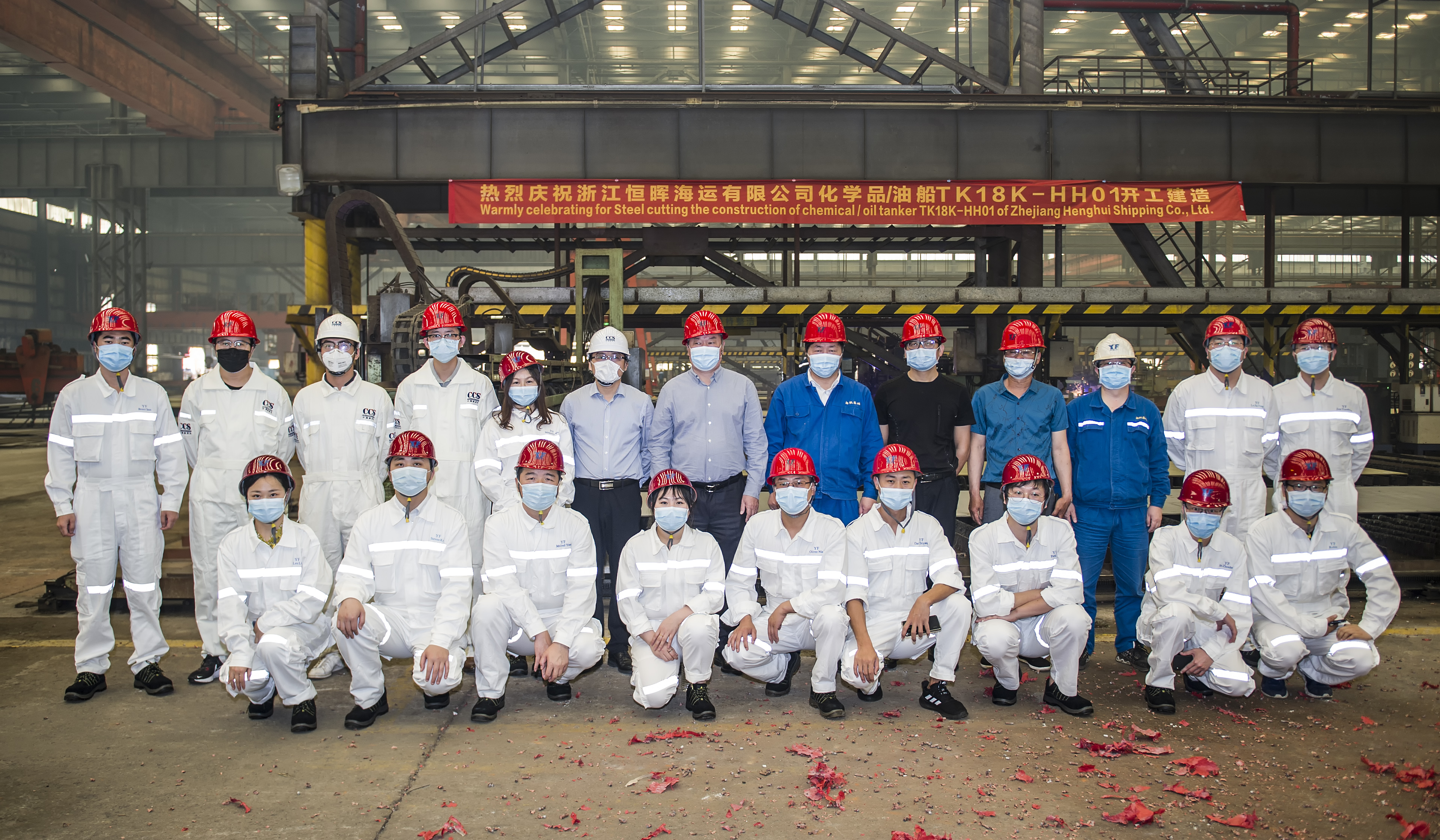 5月19日上午9點28分,由揚帆集團為浙江恒暉海運有限公司建造的18,000噸成品油/化學品船在東海岸船業有限公司聯合車間正式點火開工,浙江恒暉海運公司董事長和執行董事、揚帆集團總裁等一行參加了開工儀式。該項目合同于2020年1月1日正式簽訂并生效,實際開工時間比原計劃提前近一個月,為船舶如期交付奠定了基礎。