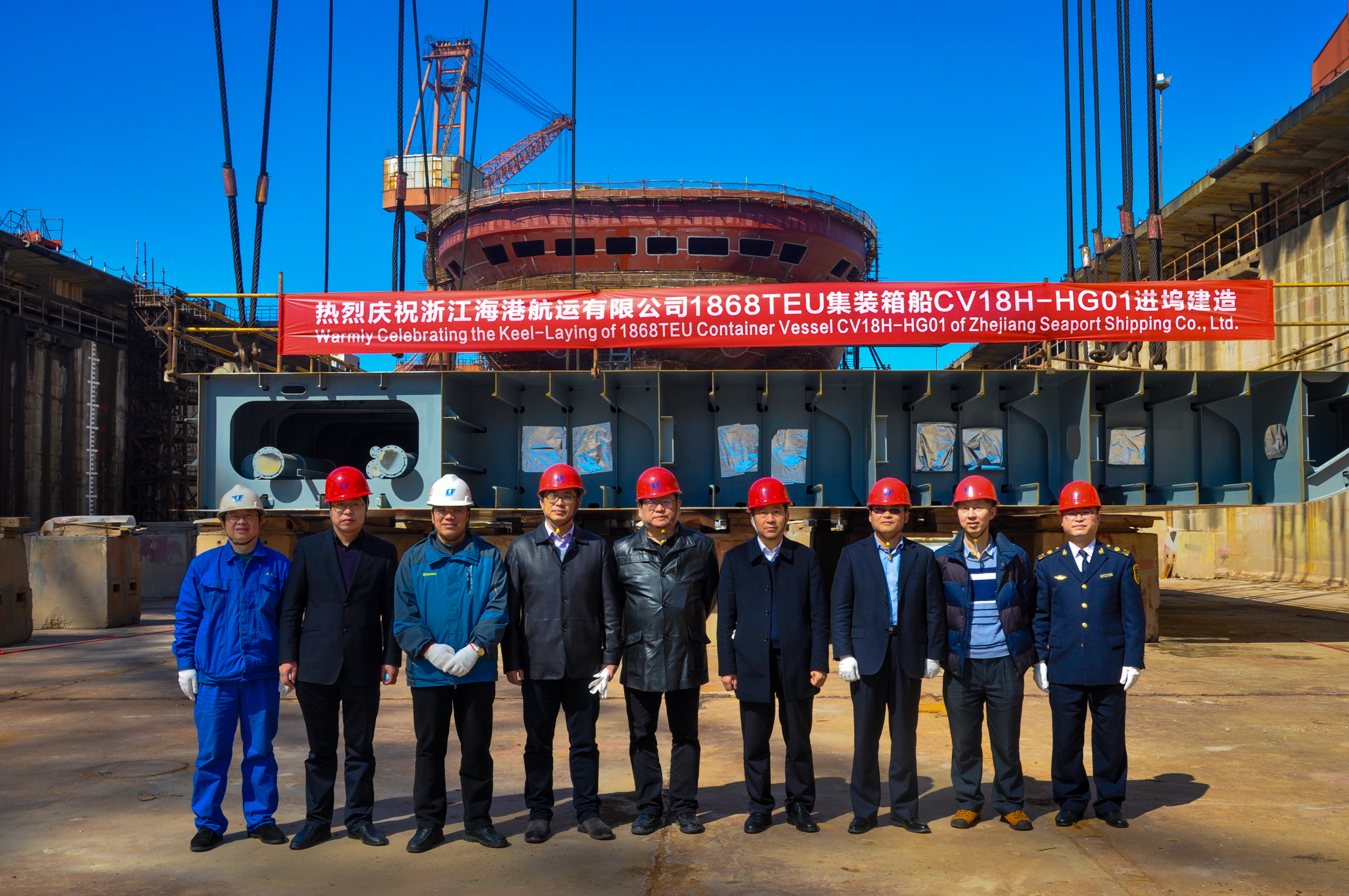 新年伊始,揚(yáng)帆集團(tuán)下屬浙江東海岸船業(yè)有限公司為浙江海港航運(yùn)有限公司建造的4艘1868TEU集裝箱船項(xiàng)目首制船(船號HG01)于今日(2021年2月20日上午11點(diǎn)28分)入塢并開始合攏;該項(xiàng)目于2020年3月20日簽訂建造合同,2020年9月17日和11月10日分別完成HG01/02和HG03/04開工節(jié)點(diǎn)。正在建造的18000噸成品油/化學(xué)品船根據(jù)船廠的生產(chǎn)計(jì)劃將在今年的3月初開啟試航;7800車汽車滾裝船系列船中的第7艘(船號GM07)按計(jì)劃將于3月10日出塢。