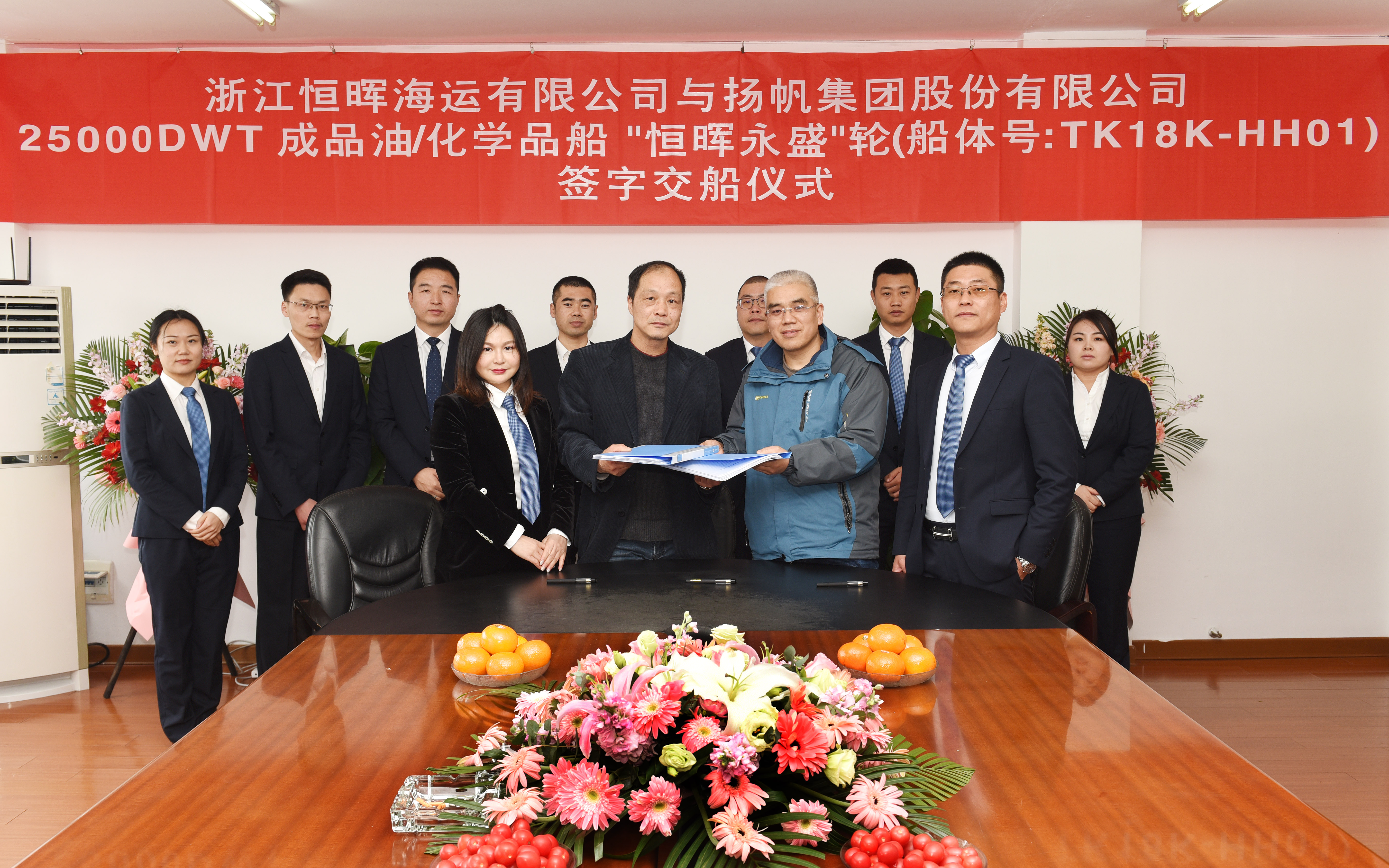 2021年3月24日,由揚帆集團股份有限公司下屬全資子公司浙江東海岸船業有限公司為國內船東浙江恒暉海運有限公司承建的1艘25000噸化學品油船“恒暉永盛”號正式簽字交付。 同日,揚帆集團承建的 “興藍浚6” 耙吸船項目在其全資子公司舟山大神洲船業有限公司順利實現試航生產節點。